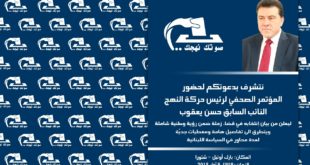 دعا رئيس حركة النهج النائب السابق حسن يعقوب الى مؤتمر صحافي للاعلان عن بيان انتخابه في قضاء زحلة ضمن رؤية وطنية شاملة ويتطرق الى مواضيع هامة لعدة محاور تتعلق بالسياسة اللبنانية وذلك عند الساعة الثالثة من عصر اليوم الثلاثاء في السادس من الجاري .شتورا بارك اوتيل
