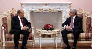 اكد رئيس الجمهورية العماد ميشال عون “ان لبنان متمسك بحدوده البرية والبحرية وبحقه في الدفاع عنها بكل الوسائل المشروعة”، لافتاً الى “اننا نعوّل على صداقاتنا الدولية للمساعدة في جبه التهديدات وعدم تفاقم الأوضاع”. واوضح في مؤتمر صحافي مشترك عقده مع نظيره الارميني سيرج سركيسيان في القصر الرئاسي في يريفان اثر …