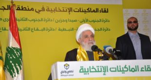 رعى نائب الامين العام ل”حزب الله” الشيخ نعيم قاسم حفل اطلاق الماكينة الانتخابية ل”حزب الله” في المنطقة الثانية في الجنوب، في القاعة الكبرى للنادي الحسيني لمدينة النبطية، تحت عنوان” نحمي ونبني”، في حضور حشد من رؤوساء البلديات والمخاتير وعلماء الدين والماكينات الانتخابية. بعد النشيد الوطني ونشيد “حزب الله” وكلمة ترحيب …