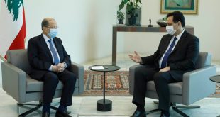 التقى رئيس الجمهورية العماد ميشال عون في القصر الجمهوري في بعبدا، رئيس الحكومة حسان دياب، قبيل جلسة مجلس الوزراء.