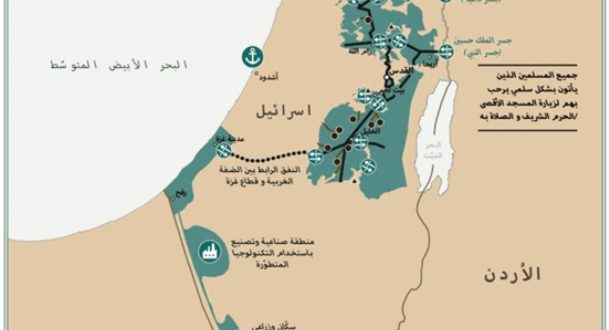 الخريطة التي تعبّر عن التصور الأميركي مترجمة بالعربية كما نشرها ترامب في «تويتر» | أنقر على الصورة لتكبيرها