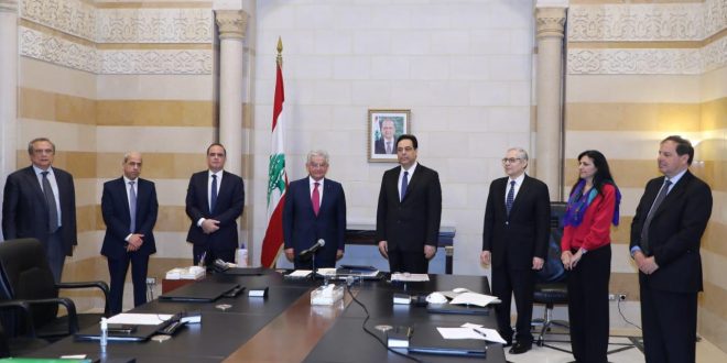 اعلان المبادرة جاء خلال استقبال رئيس مجلس الوزراء الدكتور حسان دياب قبل ظهر اليوم في مكتبه وفدا من جمعية المصارف برئاسة الدكتور سليم صفير وعضوية كل من السادة: نديم القصار، شهدان جبيلي وانطوان حبيب، الامين العام للهيئة العليا للاغاثة اللواء محمد خير، في حضور مستشاري الرئيس دياب لينا عويدات، محمد علم الدين.