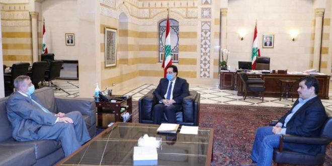 بحث رئيس الحكومة حسان دياب في السراي الحكومي مع مدير دائرة الشرق الاوسط في البنك الدولي ساروج كومار جاه، في حضور نائب رئيس الحكومة وزيرة الدفاع زينه عكر، المساعدات التي يمكن أن يقدمها البنك للبنان في هذه المرحلة الصعبة، لا سيما لناحية مواجهة فيروس “كورونا”، إضافة إلى السبل الآيلة لاستخدام برامج البنك الدولي لدعم أولويات الحكومة ووضعها موضع التنفيذ.
