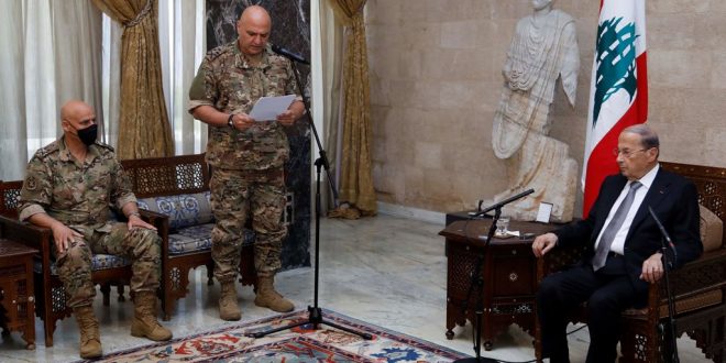وأضاف: “فخامة الرئيس، منذ اندلاع التحركات الاحتجاجية في تشرين الماضي وما تبعها من أزمة اقتصادية وانتشار لوباء كورونا، لم يألو الجيش جهدا في المحافظة على الامن والاستقرار وتحمل المهمات الشاقة بكل شرف وفخر، لأن ما نقوم به هو واجب تجاه وطننا وأهلنا. لم تنل من عزيمته اتهامات، ولا من معنوياته أي مس بأبسط حقوقه المعيشية. مهما كثرت التأويلات وحملات التخوين والاتهامات بالتقصير لتشويه صورته، سيبقى جيشنا الضمانة والركيزة الأساس لبنيان الوطن. عشتم، عاش الجيش، عاش لبنان”.