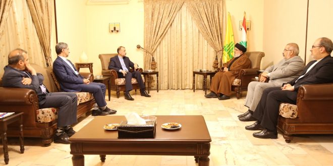 أعلن “حزب الله” في بيان، أن الأمين العام للحزب السيد حسن نصر الله استقبل وزير خارجية الجمهورية الاسلامية الدكتور حسين أمير عبد اللهيان والوفد المرافق، في حضور سفير الجمهورية الاسلامية في بيروت السيد محمد جلال فيروزنيا، وكان عرض للتطورات السياسية في لبنان والمنطقة.وأشار البيان إلى أن “وزير الخارجية أكد ثوابت الموقف الإيراني تجاه لبنان ودعمه والوقوف إلى جانبه على كل الصعد. وشكر السيد نصر الله للوفد الزائر وقوف الجمهورية الاسلامية في إيران إلى جانب لبنان دولة وشعبا ومقاومة خلال كل العقود الماضية إلى اليوم، وأثبتت أنها الحليف الصادق والصديق الوفي الذي لا يخذل أصدقاءه مهما كانت الظروف صعبة، وأن الآمال كبيرة جدا لخروج لبنان من هذه المحنة التي أصابته وبتعاون الجميع إن شاء الله”.