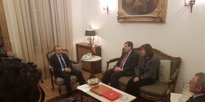 يستقبل وزير الخارجية جبران باسيل حاليا نائب مساعد وزير الخارجية الأميركي السفير دايفيد ساترفيلد في الخارجية، في حضور السفيرة الاميركية في لبنان اليزابيت ريتشارد.