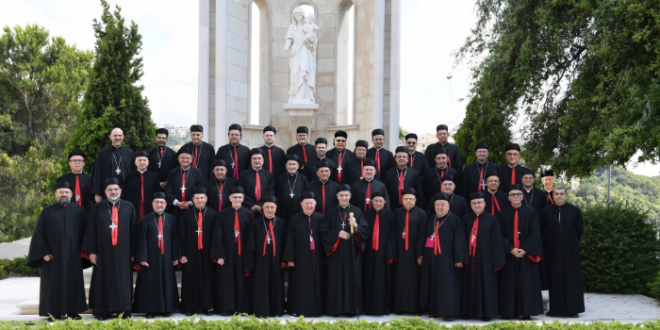 – في الختام يتوجه الآباء إلى أبنائهم وبناتهم أينما وجدوا بنداء مليء بالإيمان بالله والرجاء بالرب يسوع المسيح القائم من الموت والحاضر في كنيسته إلى منتهى الدهر. ويدعونهم إلى سماع صوت الروح القدس يتكلم فيهم ويقودهم في السير معا إلى تتميم مشيئة الله وتحقيق ملكوته بين البشر بالمحبة والأخوة والعدالة. ويشكرون الله على نعمة القداسة في كنيستهم التي أفيضت من جديد منذ أسبوعين بإعلان الطوباويين ليونار ملكي وتوما صالح. كما إنهم يحثون أبناءهم وبناتهم على التمسك بتراث كنيستهم وآبائهم وأجدادهم وعلى مضاعفة الصلاة والإبتهال إلى الله بشفاعة والدة الإله مريم العذراء والقديسين شفعائنا- لاسيما شربل ورفقا والحرديني والطوباويين الإخوة المسابكيين والأب يعقوب والأخ إسطفان- من أجل هداية المسؤولين في العالم للعمل على إيقاف الحروب وإحلال السلام العادل والدائم ونشر الأخوة الإنسانية وعودة جميع النازحين والمهجرين إلى أرضهم وأوطانهم”.