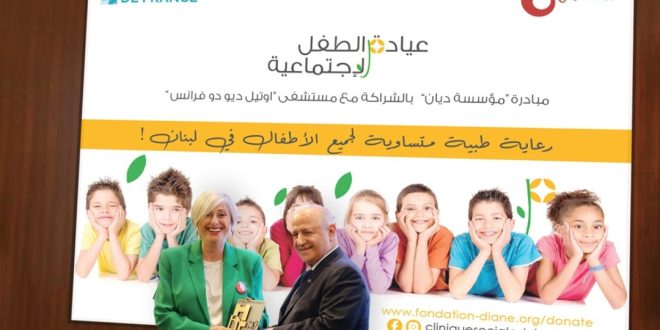 برس ليبانون – افتتحت مؤسسة ديان بالشراكة مع مستشفى أوتيل ديو دو فرانس مؤخّراً “عيادة الطفل الإجتماعية”، برعاية وزارة الصحّة العامّة، وهي عيادة نموذجية تستقبل جميع الأطفال في لبنان، وخصوصاً المحتاجين منهم، من عمر صفر وحتى الثامنة عشرة من العمر (أي من عمر الولادة وحتى البلوغ)، بدون أي تفرقة أو تمييز في الجنسيّة، وبتعرفة رمزية!