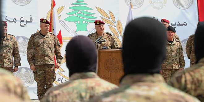 وأضاف: “البعض يراهن على إضعاف الجيش. أقول لهم أن الجيش أقوى من ذي قبل، ولدينا الآلاف من طلبات التطوع فضلًا عن عودة قسم كبير من الفارين. من يقف أمام رجال الجيش الأبطال يطمئن إلى أن مؤسستنا بألف خير، وهي تبقى العين الساهرة على كل الأراضي اللبنانية رغم شدة الأزمة، وتُتابع أداء واجبها في توقيف المخلين بالأمن ومكافحة الإرهاب وضبط الحدود ومنع التهريب والهجرة غير الشرعية من الجرود إلى البحر ومن أقصى الشمال إلى أقصى الجنوب”.
