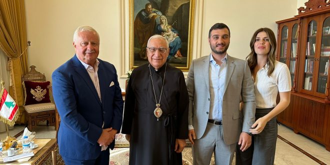 برس ليبانون _ استقبل بطريرك أنطاكية وسائر المشرق للروم الملكيين الكاثوليك يوسف العبسي في المقر البطريركي في الربوة امين عام مجلس العمل والاستثمار اللبناني في المملكة العربية السعودية المهندس فادي قاصوف يرافقه نجله المهندس رونالد قاصوف مدير عام شركة علا وزوجته السيدة مارغريتا نصرالله. واشار قاصوف الى ان الزيارة هي لشكر غبطته على تكريس جداريات كنيسة النبي الياس الخنشارة. ولتكرمه بمنحنا الوسام البطريركي “الصليب الاورشليمي” ، كما ومباركة زواج العروسسن رونالد ومرغريتا. كما عرضنا لغبطته المشاريع الانمائية في لبنان والمملكة العربية السعودية.بدوره لفت البطريرك العبسي ان نشاط هذا العام يأتي في سياق يوبيل المئوية الثالثة لإعادة الشركة مع رومامؤكدا على الاهتمام بالشبيبة ودورهم الفعال في الكنيسة وضرورة دعمهم من اجل تأسيس عائلات مسيحية ملتزمة.