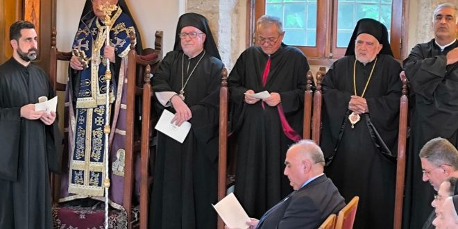 برس ليبانون ـ ترأس بطريرك أنطاكية وسائر المشرق للروم الملكيين الكاثوليك يوسف العبسي صلاة الغروب بمناسبة عيد التجلي الإلهي في دير المخلّص-صربا التابع للرهبانية الباسيلية الحلبية وذلك خلال زيارته الرعويّة بمناسبة ذكرى اليوبيل ال ٣٠٠ للشركة مع الكرسي الرسولي