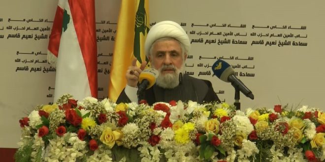 أضاف: “إننا نرى اليوم أن أميركا تريد المنطقة ضعيفة ومجزأة، وهي ترعى إسرائيل العدوانية لإرغام شعوب المنطقة على خياراتها، ولكننا كحزب الله اخترنا المقاومة لتحرير أرضنا وصنع استقلالنا، وعليه فإن أميركا لن تستطيع إعادتنا إلى زمن التخلف والضعف والتبعية، فانتصارات المقاومة مفصل تاريخي لحاضر قوي ومستقبل مستقل، ولو استطاعت إسرائيل أن تضم أرضنا في لبنان إلى احتلالها لتنشئ المستعمرات في الجنوب اللبناني لفعلت ذلك، ولكن المقاومة التي طردتها هاربة من أرضنا، هي التي منعتها من التوسع”.