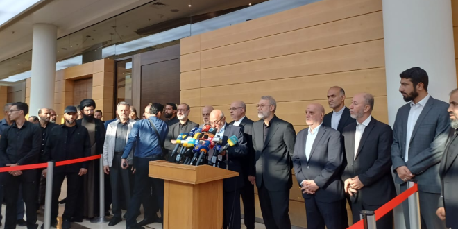 برس لييانون ـ قال أمين المجلس الأعلى للأمن القومي في الجمهورية الإسلامية الإيرانية الدكتور علي لاريجاني من المطار: “سنقف إلى جانب شعب لبنان العزيز في مختلف الظروف”.أضاف:”من المقرر أن أجري لقاءات عدة مع المسؤولين اللبنانيين وفي مقدمهم رؤساء الجمهورية والنواب والوزراء ونحن دوما نبحث ونسعى إلى تحقيق مصالح لبنان العليا”.حمدانأما ممثل الرئيس نبيه بري الدكتور عضو هيئة الرئاسة في حركة “أمل” الدكتور خليل حمدان فقال:”اهلا بكم في لبنان الذي يختزن أصدق مشاعر الإخوة والصداقة للجمهورية الاسلامية في ايران التي وقفت دائما إلى جانب لبنان وشعبه في أصعب اوقات الشدة والمحن”.اضاف:” نحن اليوم في لبنان الذي يواجه الصعوبات وتمارس عليه الضغوط ويتعرض للاعتداءات اليومية من كيان العدو الصهيوني، نقدر عاليا زيارتكم للتعبير عن دعمكم ووقوفكم إلى جانب اخوتكم اللبنانيين”.