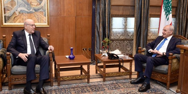 كما عرض الرئيس بري أيضاً التطورات والمستجدات السياسية وشؤوناً عامة خلال إستقباله رئيس الحكومة السابق نجيب ميقاتي