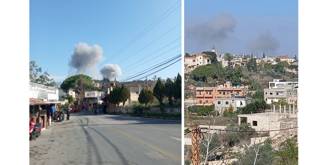 نفذ الطيران الحربي الاسرائيلي قرابة العاشرة من صباح اليوم عدوان جوي مستهدفا وادي النميرية في منطقة النبطية بسلسلة غارات ، ملقيا خلالها عدد من صواريخ جو -ارض احدث انفجارها دويا تردد في ارجاء المنطقة.وبعد اقل من ربع ساعة شن الطيران الحربي المعادي غارة جوية مستهدفا وادي حومين ويتزامن العدوان الجوي مع تحليق مكثف للطيران المسير في اجواء بلدات الدوير ، الشرقية، النميرية، تول، النبطية، زبدين وجبشيت وعلى علو متوسط.