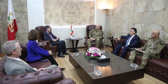 إستقبل قائد الجيش العماد جوزاف عون في مكتبه في اليرزة، مساعد وزير الخارجية الأميركية السيد ديفيد ساترفيلد، في حضور السفيرة الأميركية إليزابيت ريتشارد وتناول البحث التطورات المتعلقة بالحدود الجنوبية، وموقف الجيش المتمسك بسيادة لبنان الكاملة على أراضيه ومياهه الإقليمية والاقتصادية.