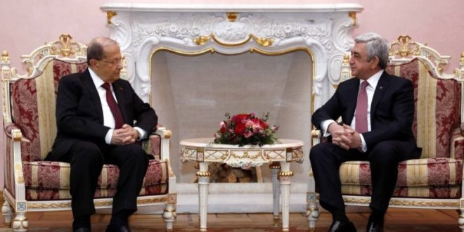 وقال ” اجريت محادثات ايجابية وبنّاءة مع الرئيس سركيسيان تناولنا فيها مسار العلاقات الثنائية بين بلدينا التي شهدت في السنوات الاخهيرة تطوراً لافتاً”، مشيراً الى “اننا تحدثنا عن مشكلة النازحين السوريين التي تفاقمت بشدة، خصوصاً في البلدان المحيطة بسوريا ومنها لبنان. فشرحت له ما يتعرض له بلدنا من ضغوط اقتصادية، واجتماعية، وامنية، نتيجة وجود اكثر من مليون ونصف مليون نازح فوق أراضيه”.