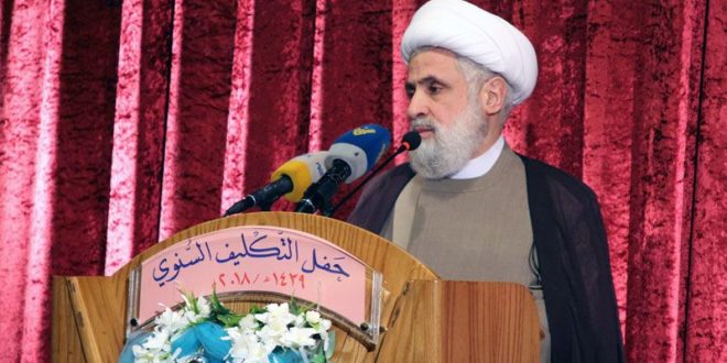 ألقى نائب الأمين العام ل”حزب الله” الشيخ نعيم قاسم كلمة في احتفال تكليف في مدارس المصطفى في قاعة الجنان، قال: “لبنان مقبل على معركة انتخابية لاختيار أعضاء المجلس النيابي الجدد، معركتنا الانتخابية كحزب الله هي في مواجهة المشروع الأميركي – السعودي، الذي يحاول أن يتدخل في الشؤون اللبنانية للإمساك بالمجلس النيابي من أجل قيادة قراره بعيدا ن مصلحة لبنان في المقاومة والاستقلال”.