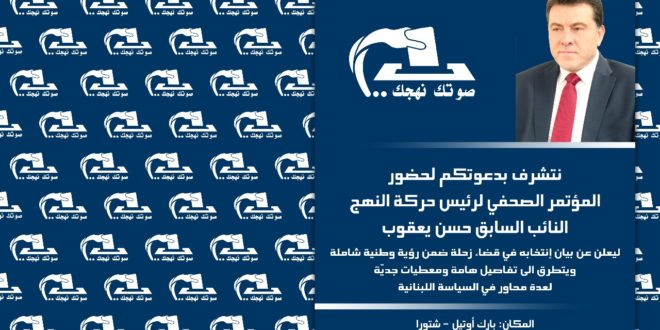 دعا رئيس حركة النهج النائب السابق حسن يعقوب الى مؤتمر صحافي للاعلان عن بيان انتخابه في قضاء زحلة ضمن رؤية وطنية شاملة ويتطرق الى مواضيع هامة لعدة محاور تتعلق بالسياسة اللبنانية وذلك عند الساعة الثالثة من عصر اليوم الثلاثاء في السادس من الجاري .شتورا بارك اوتيل