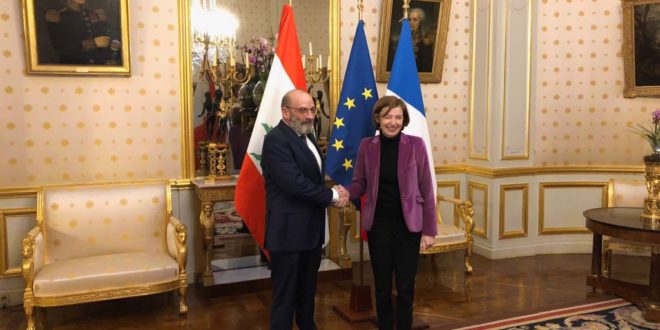 وصل وزير الدفاع الوطني يعقوب رياض الصراف والوفد المرافق الى العاصمة الفرنسية، في زيارة تحضيرية لمؤتمر روما 2 المخصص لدعم الجيش والقوى الأمنية والمزمع عقده خلال الاسبوع المقبل في ايطاليا، حيث أجرى محادثات مع نظيرته الفرنسية Florence Parly.