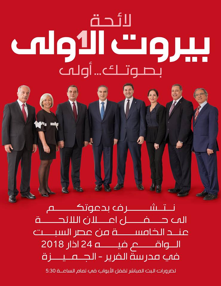 دعا وزير الدولة لشؤون التخطيط ميشال فرعون الى حفل اعلان لائحة “بيروت الاولى بصوتك …. اولى” عند الساعة الخامسة من عصر يوم غد السبت الواقع فيه 24 اذار في مدرسة الفرير الجميزة .