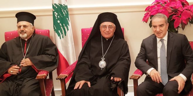 زار وزير الدولة لشؤون التخطيط ميشال فرعون، ممثلا رئيس الجمهورية العماد ميشال عون، بطريرك انطاكية وسائر المشرق للروم الملكيين الكاثوليك يوسف العبسي في المقر البطريركي في الربوة، لتهنئته بالاعياد.