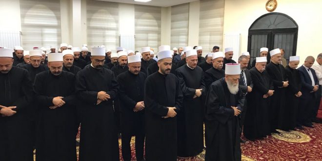أم شيخ عقل طائفة الموحدين الدروز الشيخ نعيم حسن صلاة عيد الفطر في مقام الأمير السيد عبدالله التنوخي في عبيه، بمشاركة جمع من الفاعليات الروحية والزمنية وقضاة من المذهب الدرزي، رؤساء لجان واعضاء من المجلس المذهبي للطائفة ومشايخ.