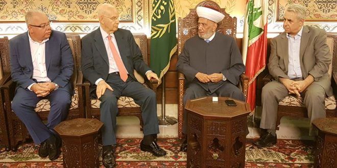 ستقبل مفتي الجمهورية اللبنانية الشيخ عبد اللطيف دريان، في دار الفتوى، النائب عبد الرحيم مراد يرافقه نائب رئيس حزب الاتحاد احمد مرعي وعضو المكتب السياسي في الحزب هشام طباره.