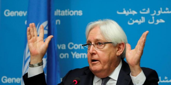 بحث الحوثيون مع مبعوث الامم المتحدة مارتن غريفيث في مسقط ترتيبات عقد مشاورات سلام جديدة “في أقرب وقت”، بعد أسبوع من إلغاء محادثات كانت مقررة في جنيف بسبب مطالبة الحوثيين بضمان عودتهم الى صنعاء.