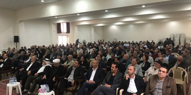 في رياق اقيم لقاء حاشد في قاعة ثانوية ماروكز للاباء الانطونيين بمشاركة النائب جورج عقيص،رئيس بلدية رياق – حوش حالا جان ندره معكرون،امام البلدية الشيخ حسين الغريب ومخاتير رياق والاهالي .