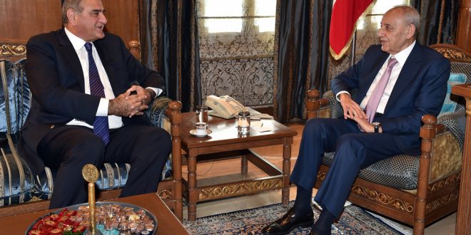 واستقبل الرئيس بري بعد ظهر اليوم وزير البيئة في حكومة تصريف الاعمال طارق الخطيب، وعرض معه الوضع العام وعدد من القضايا والمشاكل المتعلقة بالبيئة لا سيما تلوث الليطاني.