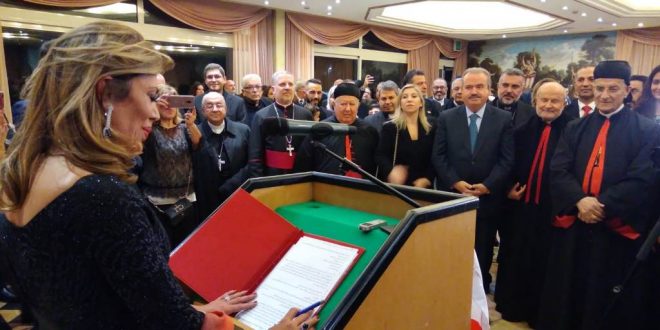 وقالت:”كسفيرة للبنان، وفي اطار تعزيز العلاقات بين بلدينا، أود ان أحاول تحقيق كل ما أمكن من مبادرات مشتركة وخلق فرص عمل وأسواق جديدة على مختلف الاصعدة، منها تكثيف التبادل الثقافي والاجتماعي والسياحي والفني والتجاري. اما مدعاة الفخر الاكبر لي، فهي الجالية اللبنانية في ايطاليا المليئة بقصص النجاحات والانجازات. انتم مميزون أينما وجدتم، فاللبناني هو دائما قصة نجاح وصاحب الابتكارات والمبادرات ونموذج يحتذى به. ثابروا على هذه الخطى”.