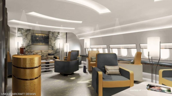 وللوهلة الأولى فإن الانطباع عن الطائرة الجديدة من بوينغ والمخصصة لرجال الأعمال، تبدو الطائرة وكأنها فندق فخم من فئة 5 نجوم أو بالأحرى تبدو كقصر فخم طائر، بما تخفيه داخل هيكلها.