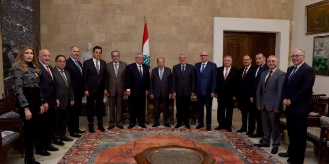 استقبل رئيس الجمهورية العماد ميشال عون قبل ظهر اليوم في القصر الجمهوري في بعبدا وفدا من جمعية الصناعيين اللبنانيين برئاسة الدكتور فادي الجميل وعرض معهم لواقع الصناعة اللبنانية.