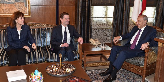 استقبل رئيس مجلس النواب نبيه بري، ظهر اليوم في عين التينة، مساعد وزير الخارجية الأميركية للشؤون السياسية ديفيد هيل والسفيرة الأميركية في لبنان اليزابيث ريتشارد، وجرى عرض عام للوضع في لبنان والمنطقة.