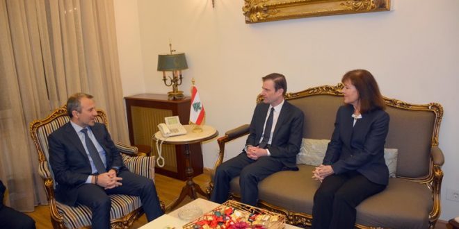 استقبل وزير الخارجية والمغتربين في حكومة تصريف الاعمال جبران باسيل وكيل وزارة الخارجية الاميركية للشؤون السياسية دايفيد هايل ترافقه السفيرة الاميركية لدى لبنان اليزابيت ريتشارد.